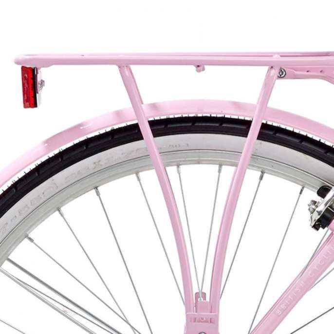 Bought for my wife as a present but, due to health issues never ridden. The same bike is available on the internet for £239 - £269. It is fully assembled and ready to ride. The specification is as follows:- Frame: 18" Town and Country Ladies Frame with a Low Step-Over Top Tube Fork: Hi-Tensile Gearing: 6 Speed with a Microshift Rotational Gear Lever and Shimano Rear Derailleur Chainset: Single Chainset with a Full Chainguard Wheels: Viking 26" Alloy Double Wall Rims with Small Flange Hubs Tyres: 26" All Black Trekking Tyres with White Side Walls Brakes: Alloy ‘V’ Type Brakes with Alloy Levers Steering: City Style Trekking Handlebar with Close-Up Stem Saddle: Viking Comfort Trekking Saddle with a Chrome Seat Post and Alloy Seat Clamp Features: Comfort Grips, Trekking Style Pedals, Rear Carrier, Full Mudguards, Kickstand, and Front Basket Colour: Baby Pink Frame and Fork Extras: Hockey stick chainguard Alloy kickstand Front basket Full chromoplastic mudguards Rack colour coded rear luggage carrier