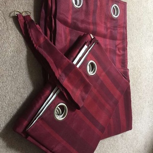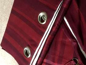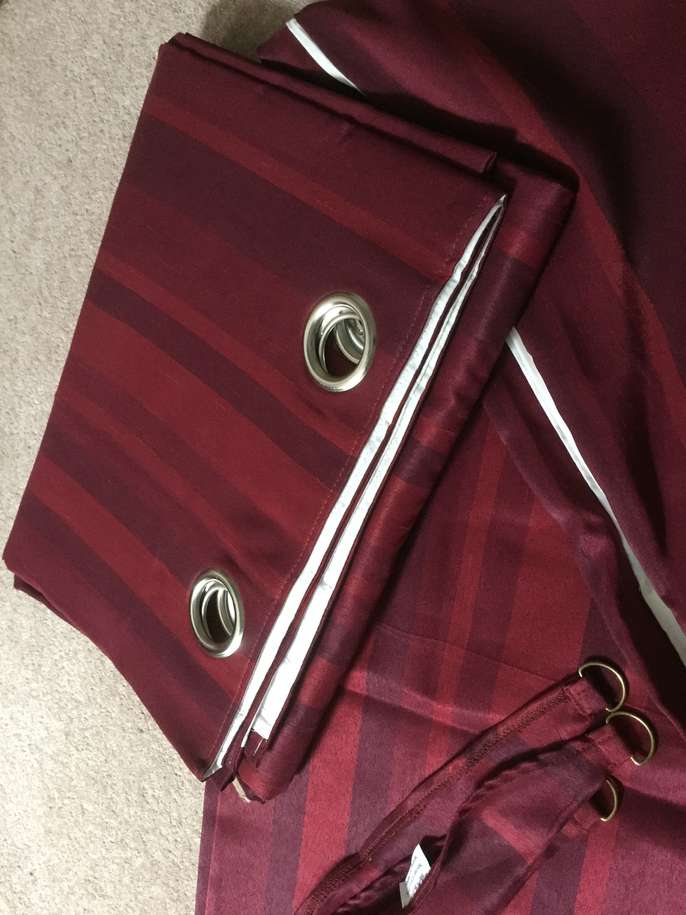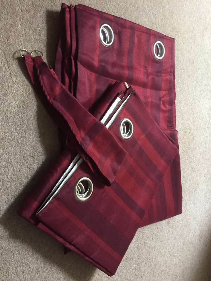 1 x Pair of Composition Red Stripe Eyelet Curtains and tie backs Brand New Polyester Lined 180cm long 160cm wide