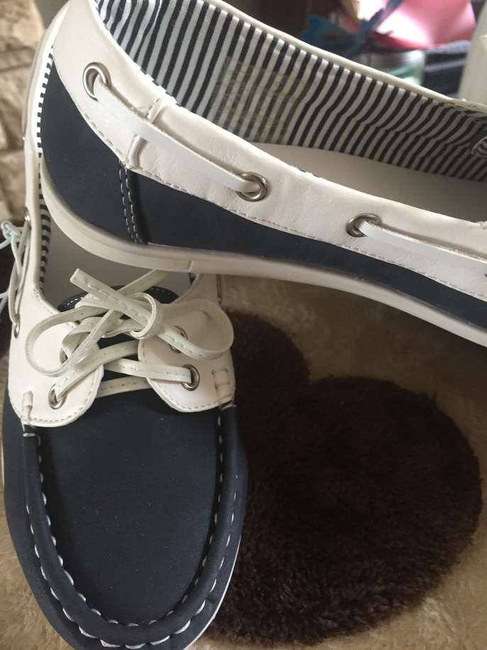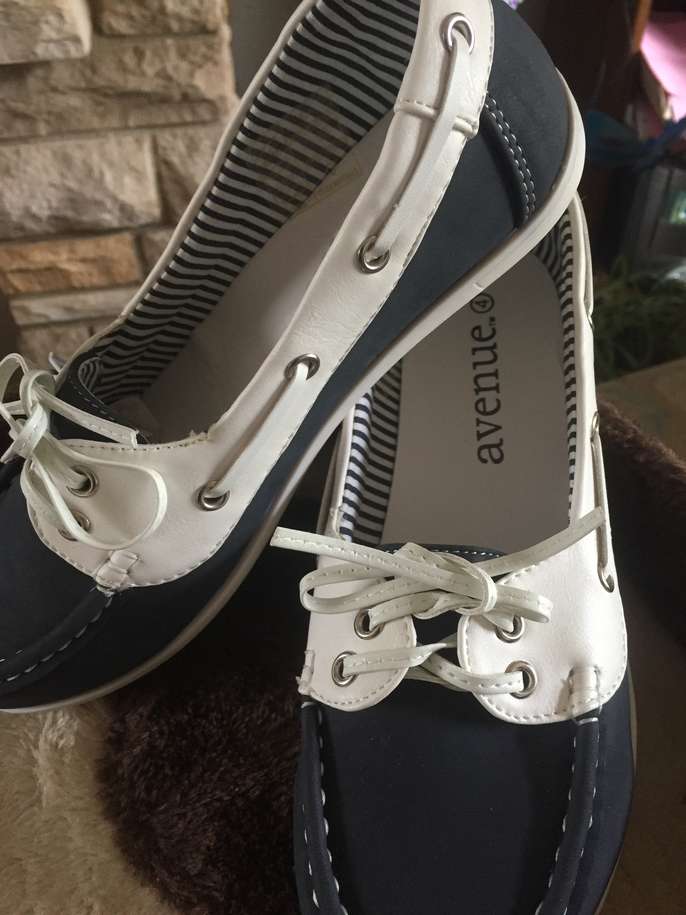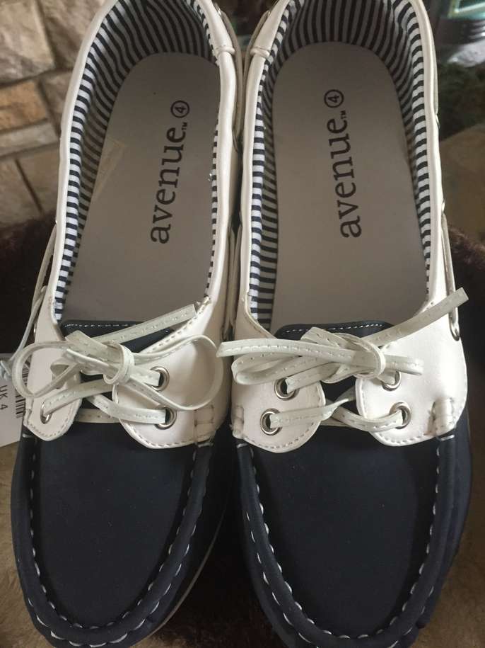 Lovely Summer Shoes Brand new never worn Ladies Boat Shoes White & Navy Light Weight Looks good with slacks/jeans Wrong Size Brought Size 4 Half Of Original Price £5