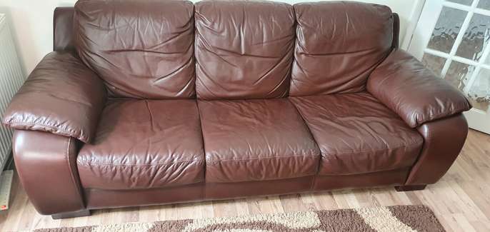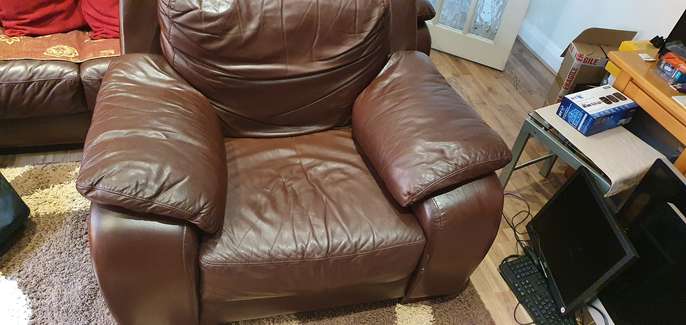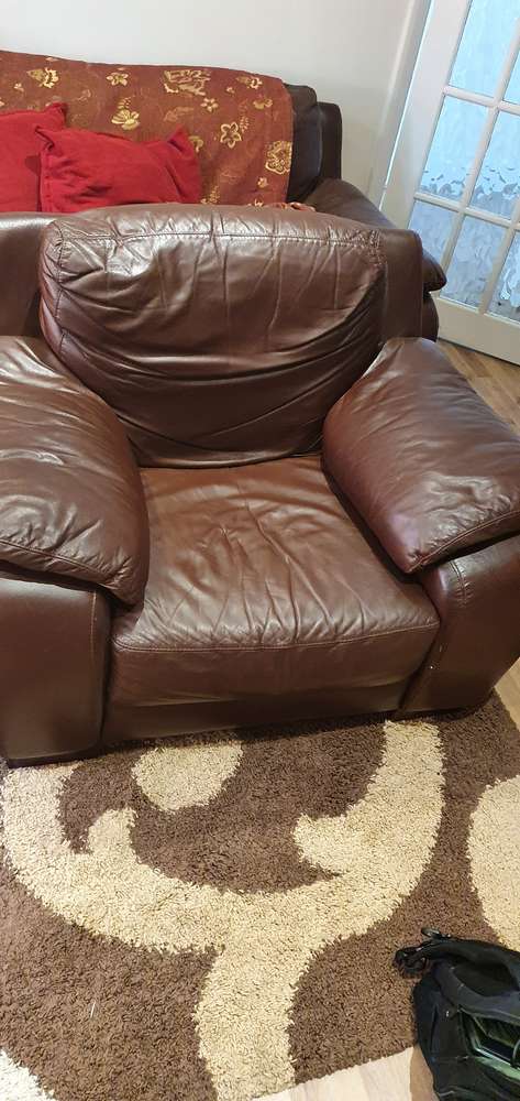 This is very good condition. Genuine leather not Synthetic measurement: 3 seater 225cm(H) x 93cm(W) x 80cm(H) Single seaster 117cm(H) x 93cm(W) x 80cm(H) If you have any queries, please contact mw on 07979696875. Item is for collection BR1 4LH I can deliver within 3 5miles of my post Code for £20 (2 trips) in my 7-seater.