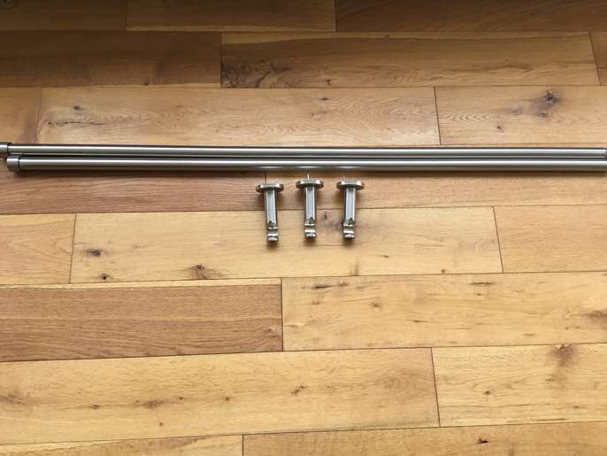 Curtain pole comes in 2 pieces and would suit patio door or extra wide window. Comes its 3 brackets.