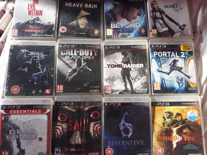 Games are all in good condition, however, they do have scratches and some cases are dirty and cracked. They were in a storage unit for a good few years. Everything worked when last played 4 years ago. Black ops 2 and Advanced Warfare are a little jumpy and may freeze a bit. Buzz- Batteries not included and box in a scruffy dirty condition on OUTSIDE. 29 DIFFERENT GAMES-31 IN TOTAL! Beyond two souls- 2 copies. Tomb raider- 2 copies.