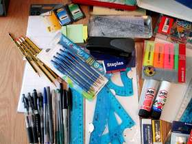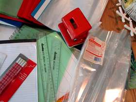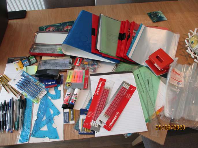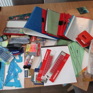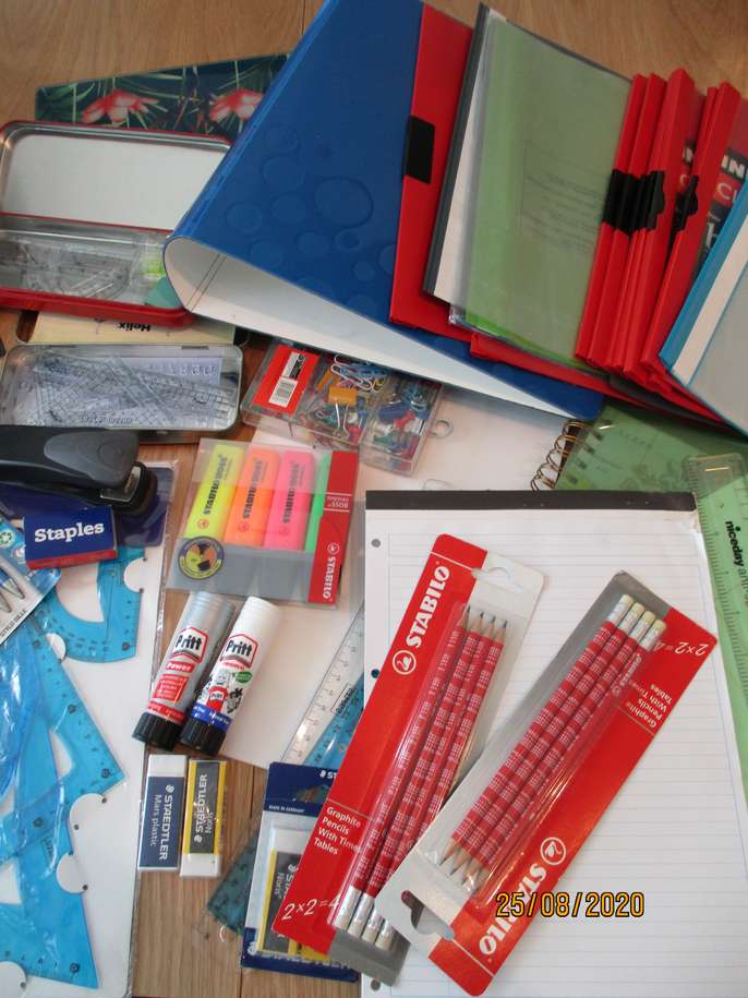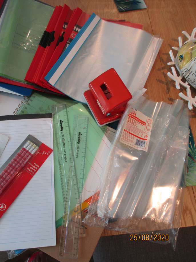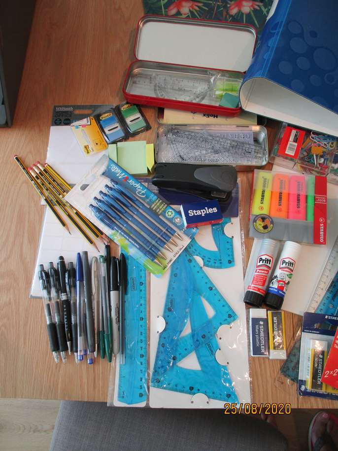 Various items of back to school stationery all pens/pencils etc are new labels, post its, binders, pads , stapler, staples, hole punch, geometry sets new, plus many other items