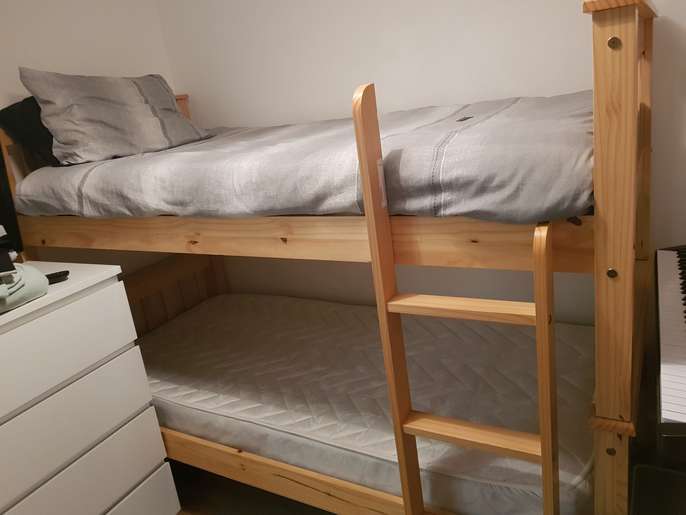 Double bunk set with mattresses only a few months old. Hardly used and always used Mattress Protectors so they are like new. We will dissemble for you to collect (linen not included).