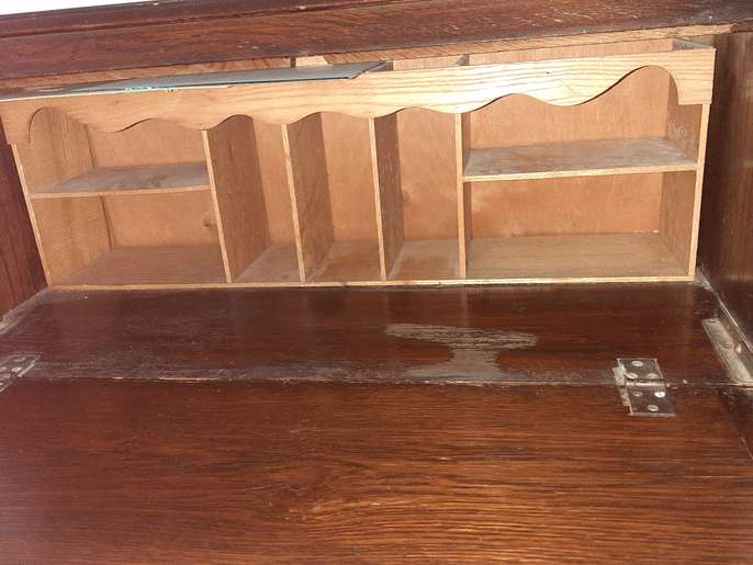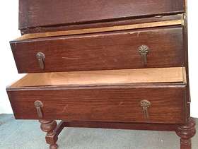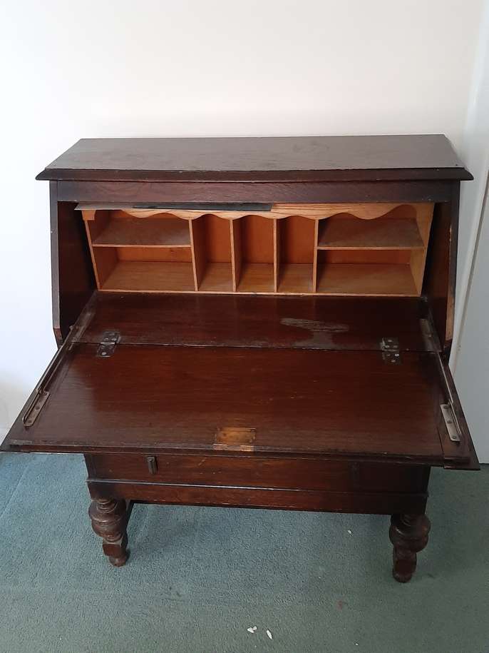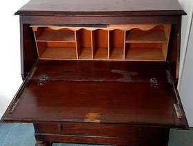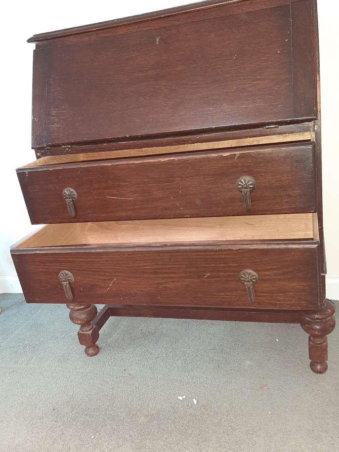 Solid wood bureau. Useful for laptop. Shelves inside flap and 2 drawers. Must be collected.