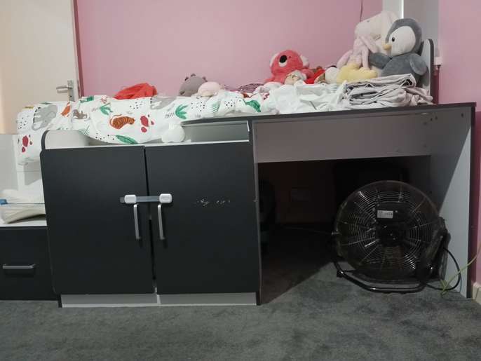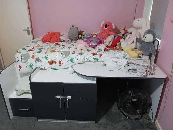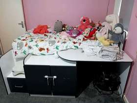 Kids cabin bed, never used, has been sitting up with all the teddy's on since we got it, had a few marks on the front door bit
