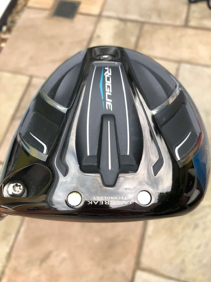 CALLAWAY ROGUE DRIVER. 10.5 degrees, stiff Aldila 50g shaft, head cover and tool. VGC, slight ball scuff on face, no skys or other damage.
