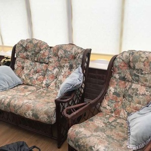 Cane furniture set comprising, 2 seater settee and 2 matching chairs, complete with blue and peach flowered upholstered cushions (see photo). All in very good and clean condition. Genuine reason for sale (house move) and can be viewed (by appointment) prior to purchase, at Figheldean. A bargain at only £75 (or very near offer).
