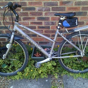Ladies mountain bike - Cannondale C400, colour smoke silver. Wheel size - 26" shimano brakes High rise handlebars with adjustable stem rise New ladies gel saddle Carrier and under saddle bag included.