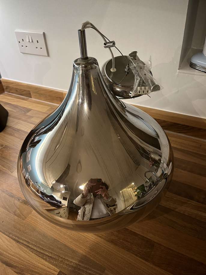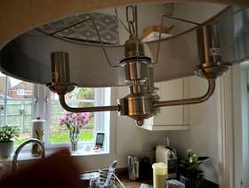 2 matching, Laura Ashley, 3 arm ceiling lights. Excellent condition, rarely used. Currently priced at over £151.00 in John Lewis. (Sorrento, natural linen shades and lined with metallic inner, check website for full details. Full working order, just removed to replace with ceiling lights. £75 pair Also Next. Smoked glass, with inner shade, good condition, teardrop shape. Full working order, removed to replace with ceiling lights. £20.00 Or £70 if bought together
