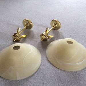 Italian opaque glass/brass ceiling 'uplight' pendant lights, very good quality, 30cm diameter, 20cm 'drop' plus chain, price is for the pair. Also available pair matching wall lights.