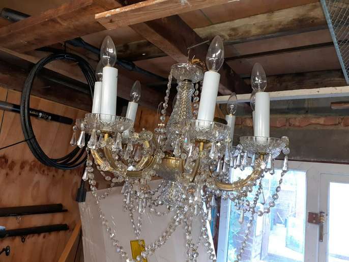 Old vintage antique glass chandelier ceiling candle pendant lighting lamp Need repair