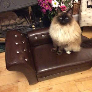 Small leather look chaise lounge perfectly eye catching in our home and commented by everyone who visits. Ornamental or useful as a gift for a child’s bedroom or play area or for a small cat or dog bed. Extremely strong and in perfect condition. We moved house and so it’s no longer matching our furniture.