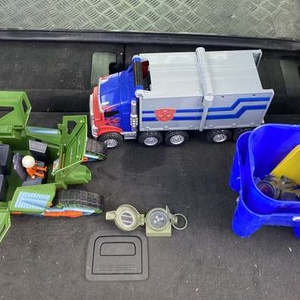 Play people green vehicle, truck, plastic buckets & spade, toy compass Collection SG9 near Puckeridge