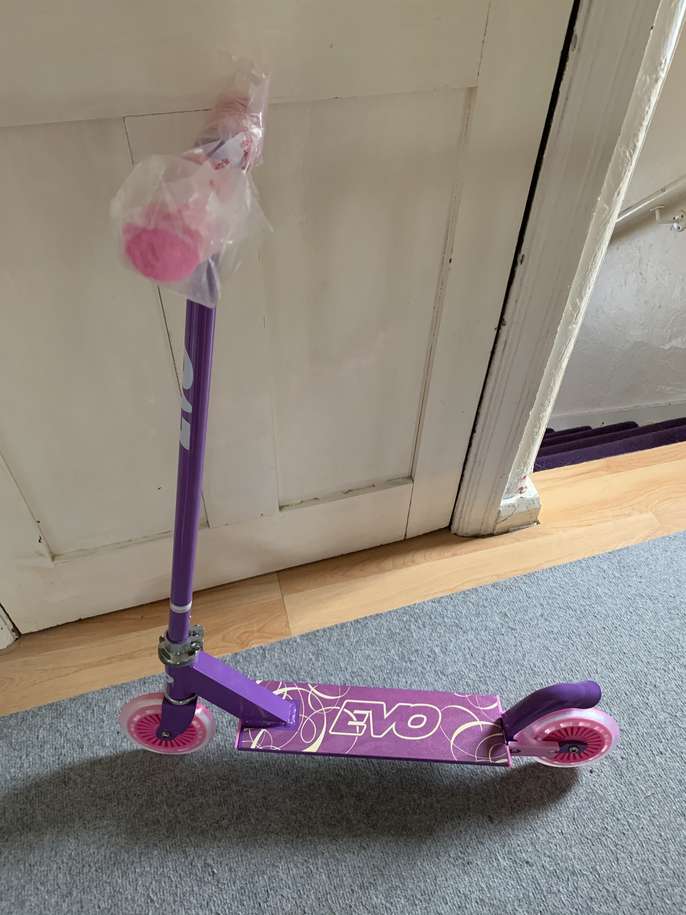 Child’s Scooter never been used brand new Age 5+ we got for my granddaughter but she never used it.