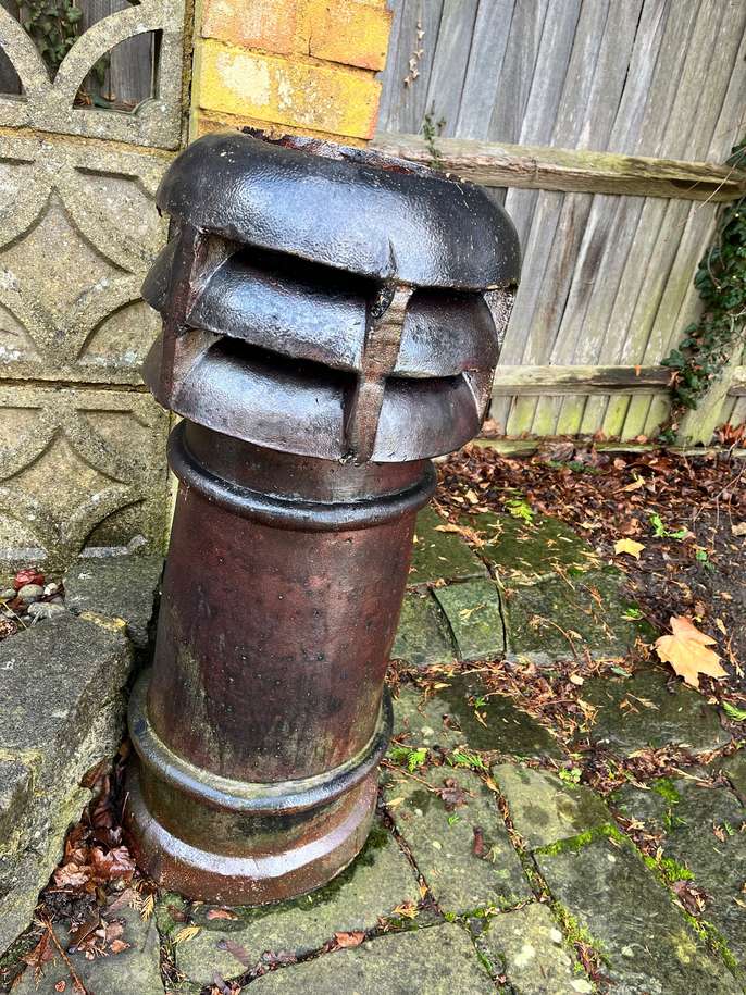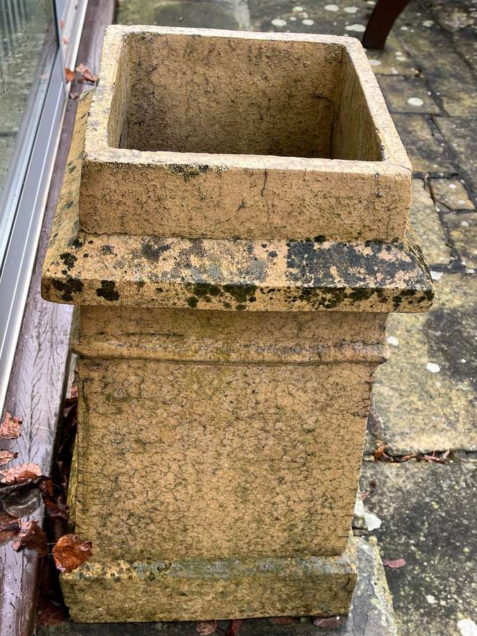4x Vintage chimney pot planters for sale from near Slough. Collection only Approx dimensions: 62 cm high, base of square ones is approx 34cm, top planting space is approx 25cm Approx dimensions of pale coloured round one: Base 30 cm diameter, planting area 23 cm, height approximately 62 cm Approx dimensions of dark coloured round one: Diameter 39 cm, planting area diameter approximately 24 cm, height approximately 86 cm