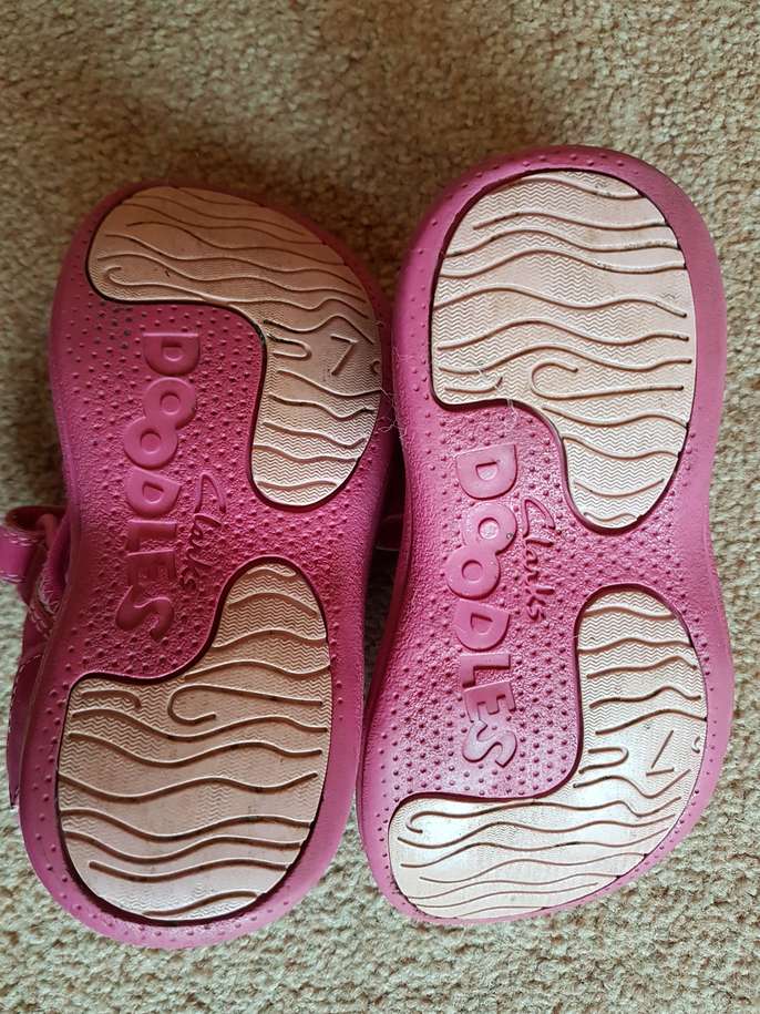 Clarks 'Doodles' Sandals size 7 - £2 Worn, but in good condition Comes from a smoke free home (I also have girls clothes in different size / age ranges, please ask and I can send you pictures & descriptions etc) Collection Only - see my other baby clothes, toys, books & other baby items for sale