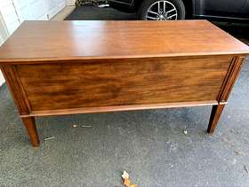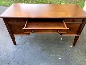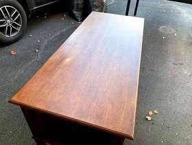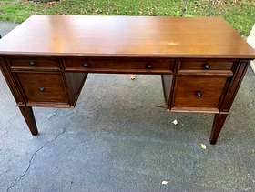 Well constructed sturdy wooden desk. The only "damage" is on top from computer mouse wear. Has a center drawer that can be used as a keyboard tray (front folds down). If you're interested I can leave out in the driveway for you. 60"x26"