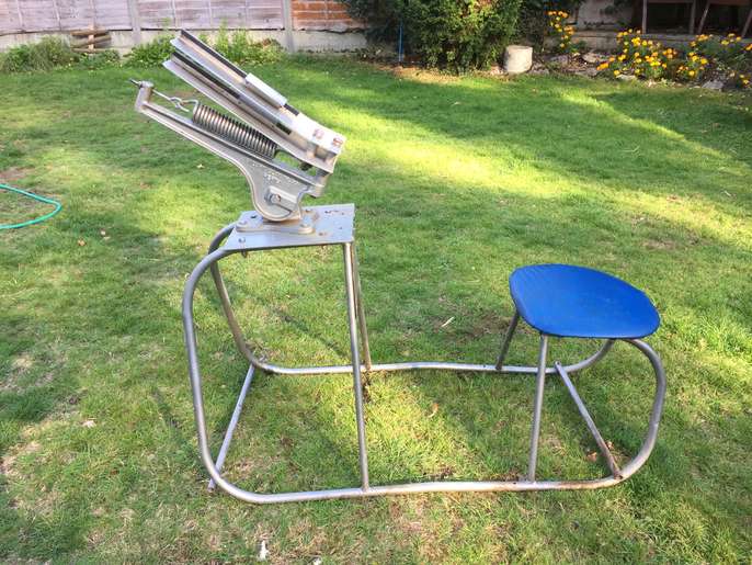 Portable sit on Stuart clay Pigeon Trap . Double or single throw. Adjustable elevation and spring tension. Will throw all size clays .