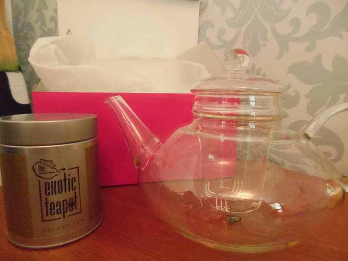 Clear Glass Teapot with Infuser + Free Oolong Tea, Exotic Teapot Company