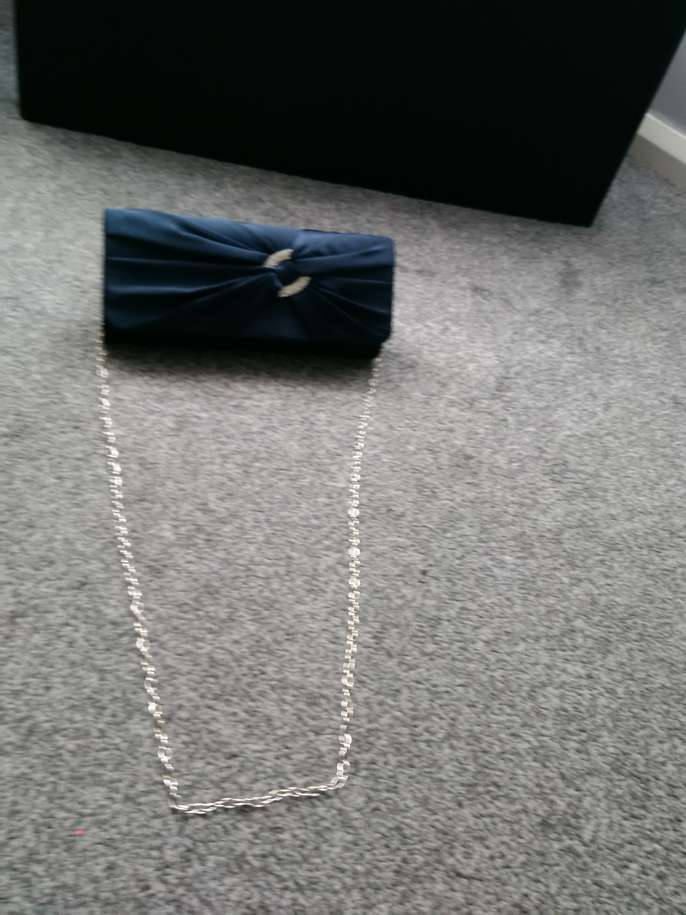 Navy clutch bag with long chain shoulder strap, this can be unclipped, used once for a wedding. Excellent condition. Collection only
