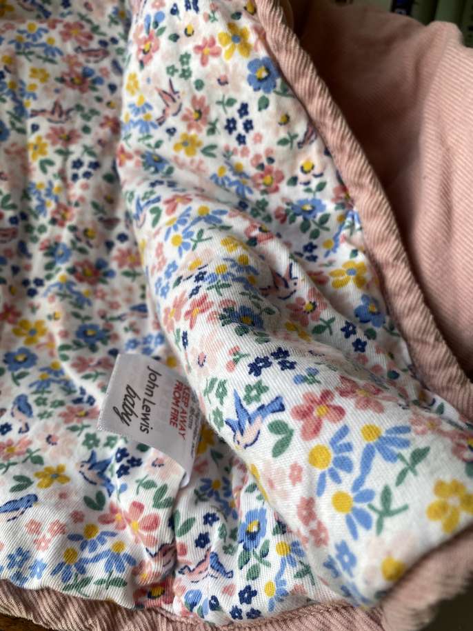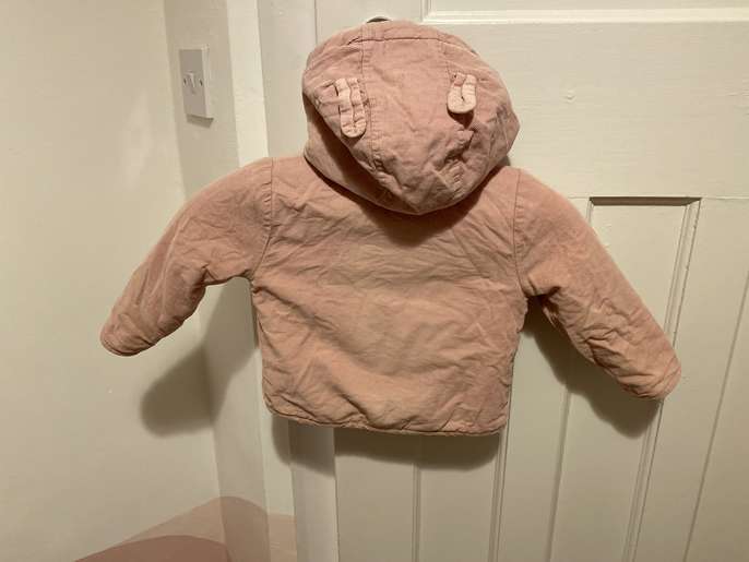 PINK RABBIT JACKET, JOHN LEWIS, SIZE 12-18 months 100% cotton with polyester wadding