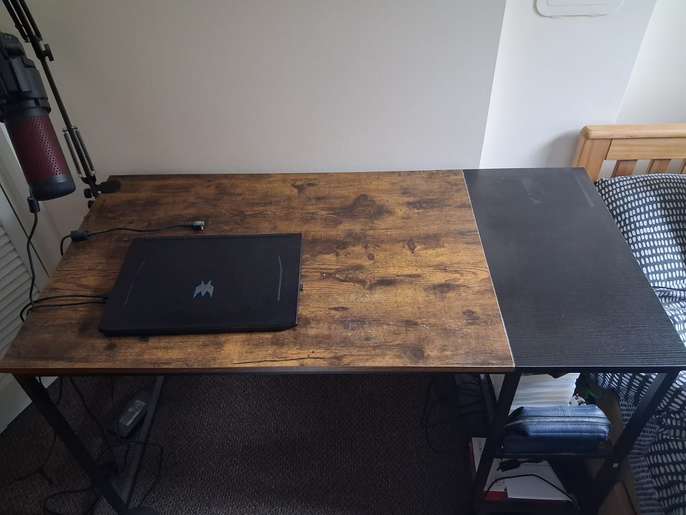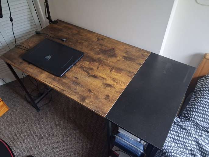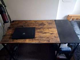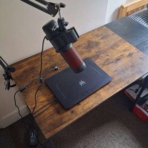 Gaming desk with shelves. Measurement in photos. Laptop and microphone not included. Collection only. Available to collect from 17th Feb.
