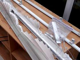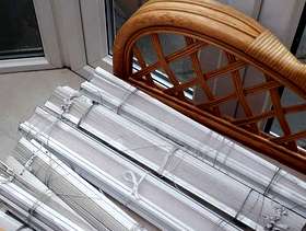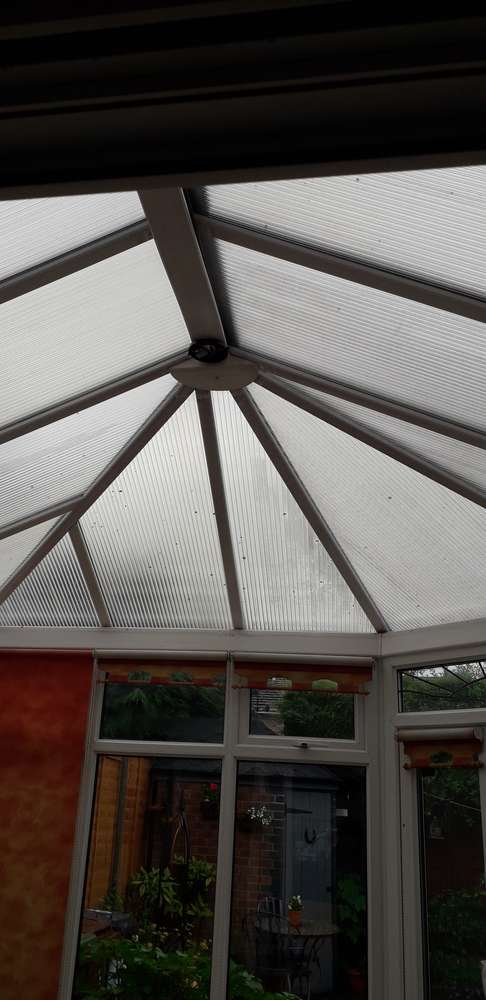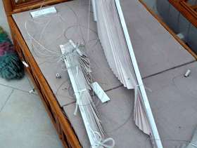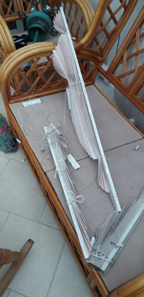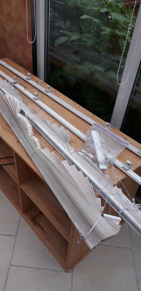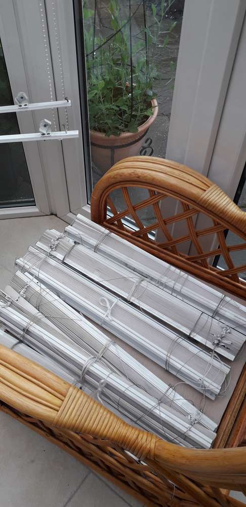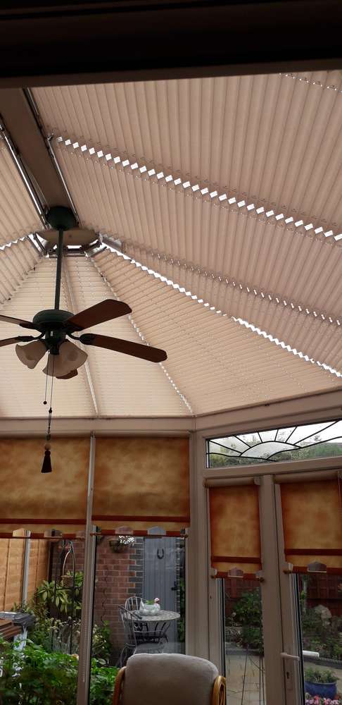 Pleated conservatory ceiling blinds. Dusty but in working condition. All taken down , ready to go. Depth of blinds approx 5ft but adjustable either way.