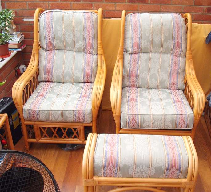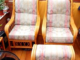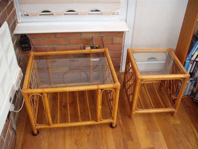 This furniture is in very good condition.it comprises of, 4 chairs, 1 foot stool, 1 large table, 2 small tables.