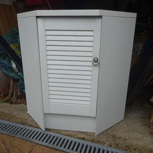 Corner Cabinet white with Louvred Door. Good quality and condition. 80 cm h x 60cm x 60cm. Ideal for bathroom. This item is not in Finchampstead as the site indicates, but Cox Green, Maidenhead
