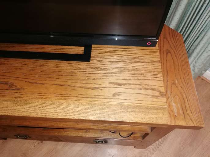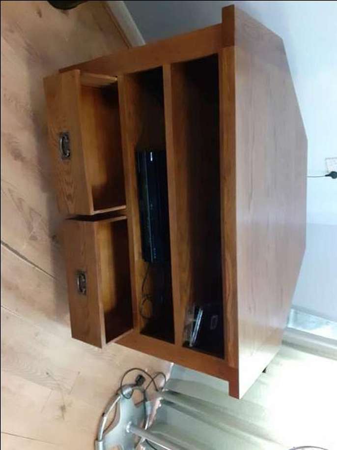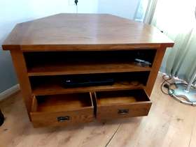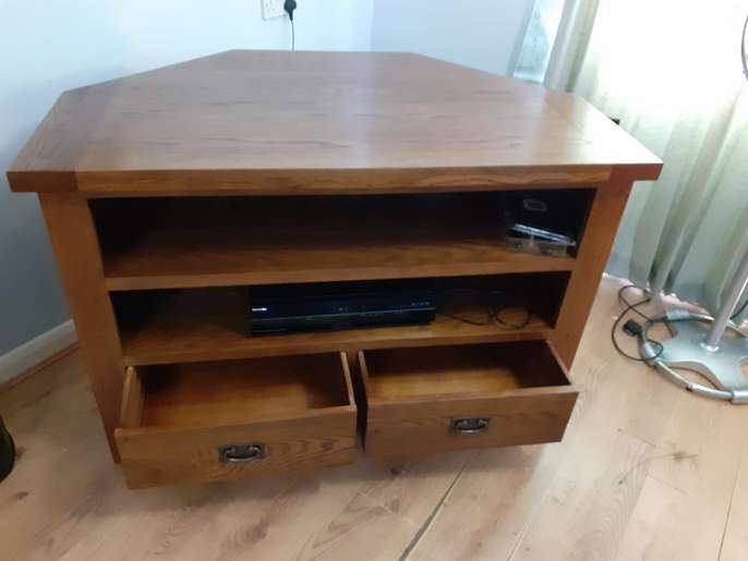 Large solid corner TV Unit with two shelves and drawers. Collection from Kinson ASAP