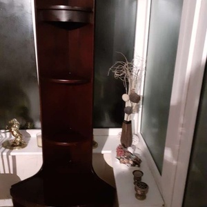 A unusual corner unit comprising of 5 shelves and standing 6 feet tall