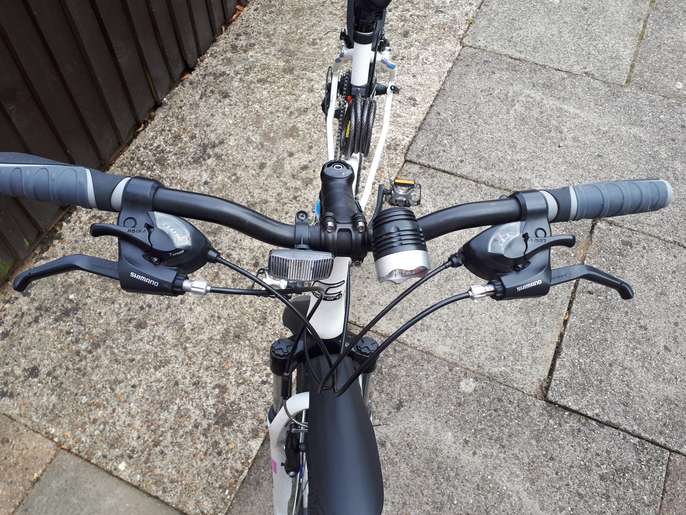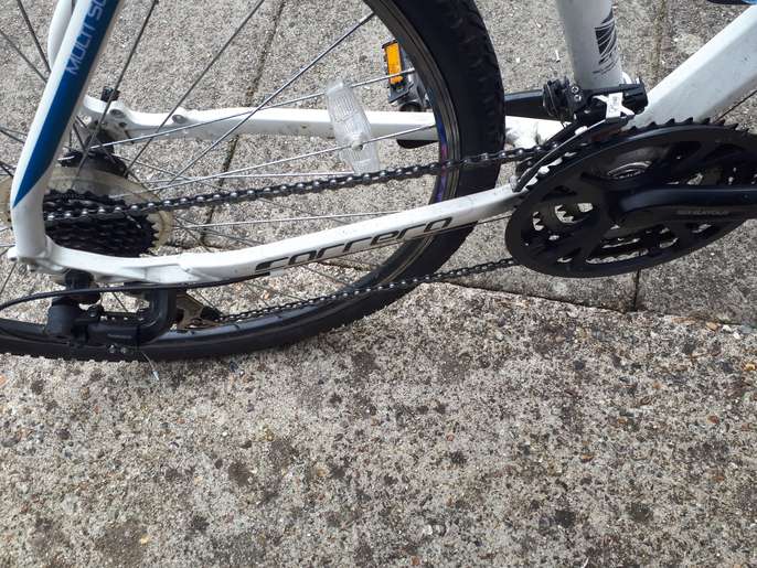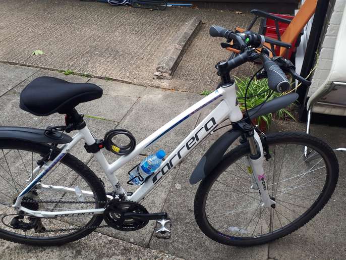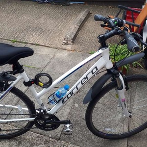 This bike comes with all accessories included and a pump if needed. Great bike no space for it as moved into smaller place. Needs a good home. Wheels do come off if need to put in vehicle.