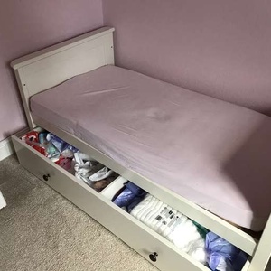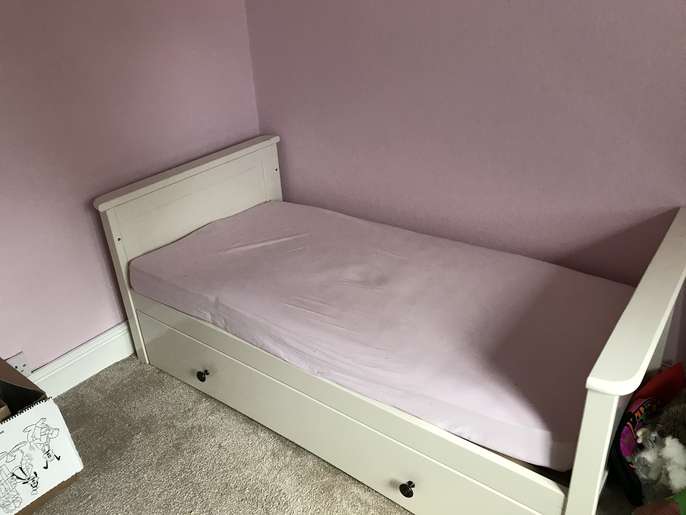 Mothercare Harrogate range Cot bed with under bed draw selling with clean hardly used mattress H94xW154xD80cm about 5 years old It is disassembled at the moment ready for collection BR6 (Orpington)