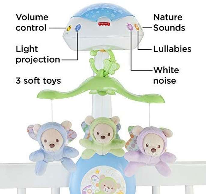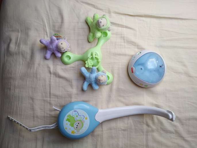 Baby Light Projector Cot Mobile, Suitable from Birth, 3 in one, cot carousel small signs of use- 2 buttons worn down, with remote control. Everything working well. selling because dont need anymore.