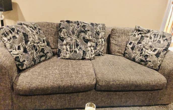 Couch This item is in Vaughan CA All the details Beautiful 89 inch grey beige couch with lots of pillows included Price 125 Time Remaining This listing has finished Category Furniture Post Message