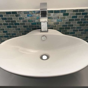 White counter top sink used but in good condition 550 mm wide x 20mm deep x ( 450 mm front to back) taps & waste excluded