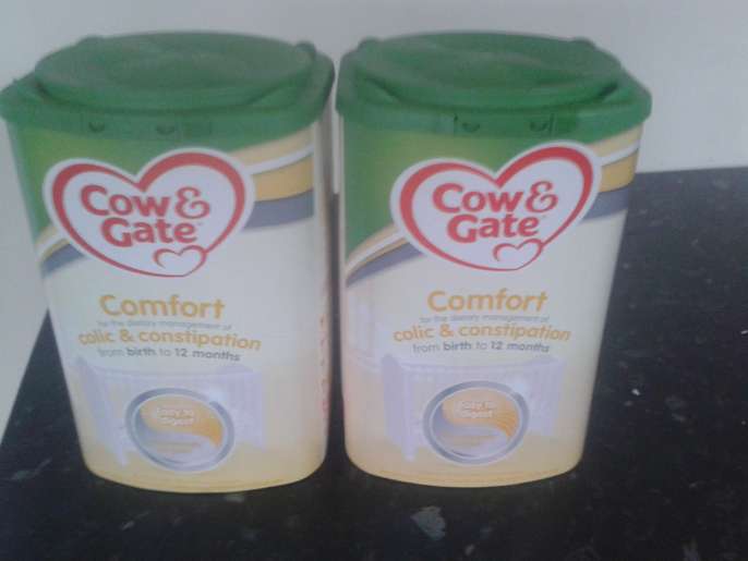 Four boxes of cow and gate baby milk colic and constipation baby milk from birth 800g size sealed and in date the reason why i am selling is because i brought for my grandchild but i picked up the wrong one was supossed to get cow and gate no 2 so am hoping that someone out there has a baby that it currently on this so can benefit from my mistake they cost 10 pound each but will sell four for 20 pounds so therefore i hope at least i can recover some money to be able to buy the correct baby milk . so i know how expensive having a baby is so there fore thought especially as xmas coming up it would help out someone out also