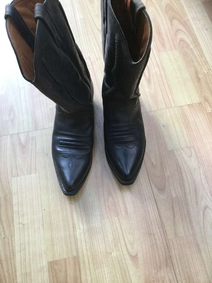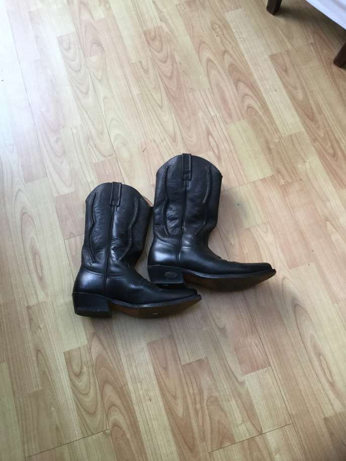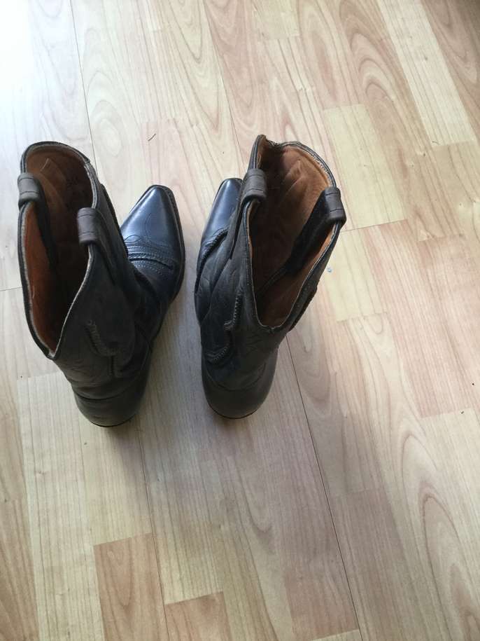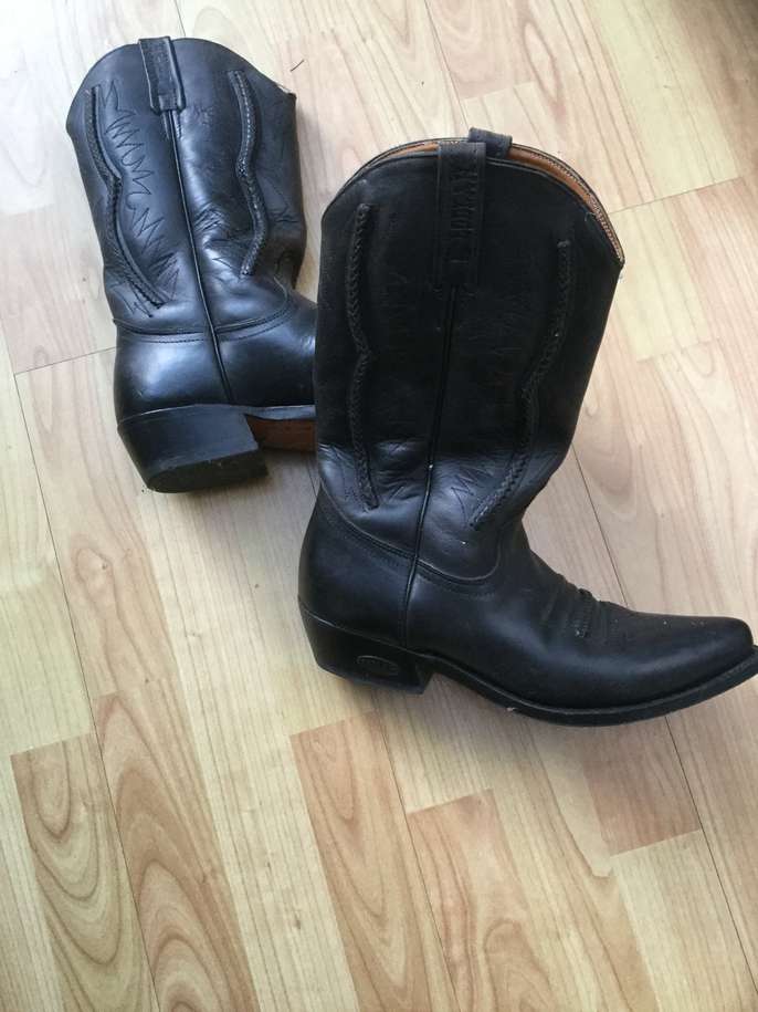 Black leather size 44 . Worn only a few times cost over £100. Very good quality leather inside and out, need a good polish.