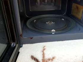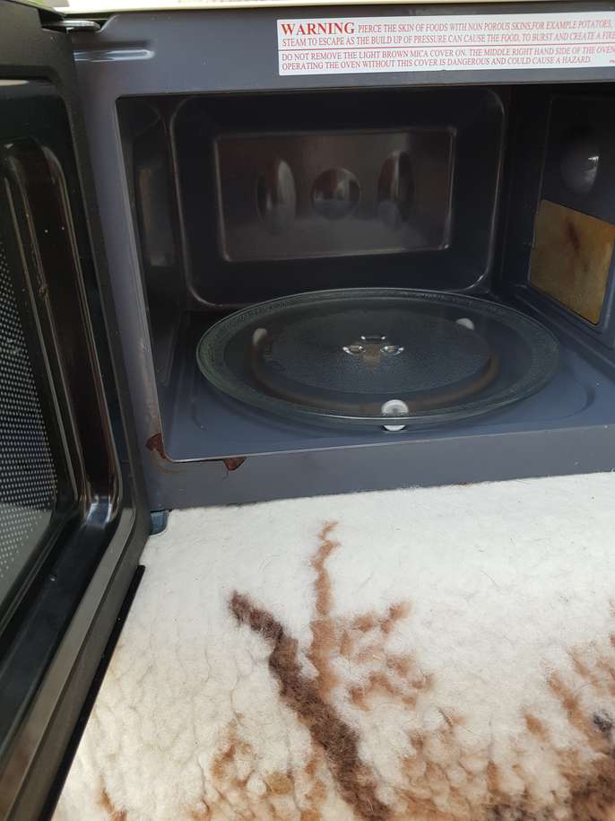 Very easy to use cleanfrom a non smoking household, but has a small rust area on the rim near the door as shown in the second picture. 700 watt