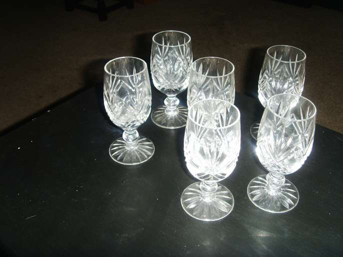 Immaculate set of 6 cut crystal wine or port galsses. no chips or cracks of any description lovely christmas pressie sorry no longer have the box amersham