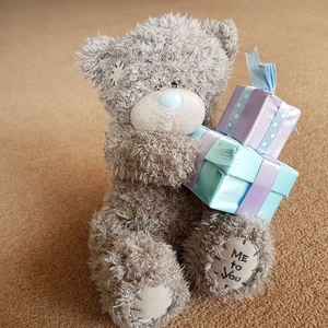 Cuddly Soft Bear with presents Excellent condition - Washed and comes from a smoke free home (I also have other soft toys & books, please ask) Collection Only - see my other baby clothes, puzzles, books, toys & other baby items for sale