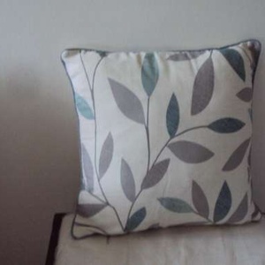 The Fusion Beechwood Duck Egg cushion (new) with leaf pattern front and back, with tag, 100% cotton, dimensions 43 x 43cms. With zip so you can have the cover cleaned. £10 cash. Collect in London NW11 halfway between Golders Green and Finchley Central tube stations, buses a 3 min walk on Finchley Road (nearest bus stop post code is NW11 6AG). Free to park outside.