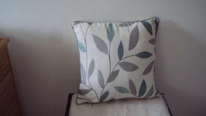 Anchor cushion, pattern cushion with tassels, and new Fusion cushion, the anchor cushion is polyester and linen and washable, the dimensions are Anchor 43 x 30cms. Patterned cushion polypropylene and polyester and dry cleanable, dimensions are 49 x 28cms The Fusion Beechwood Duck Egg cushion (new) with leaf pattern and with tag, 100% cotton, dimensions 43 x 43cms. They each have a zip so you can have the covers cleaned. All clean. The anchor and patterned cushions are £8 each and the new Fusion cushion £11 cash, or £20 cash for all three. Collect in London NW11 halfway between Golders Green and Finchley Central tube stations, buses a 3 min walk on Finchley Road (nearest bus stop post code is NW11 6AG). Free to park outside.