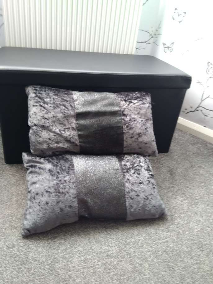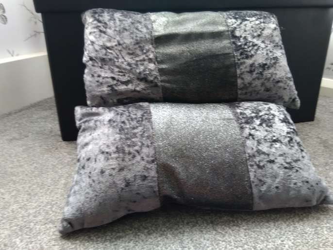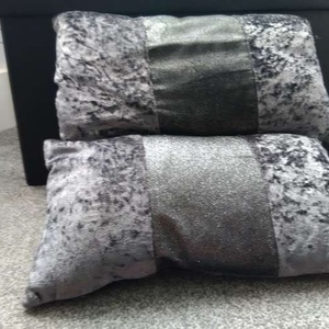 Two lovely dark grey/glitter cushions, removable covers for washing. Collection only.