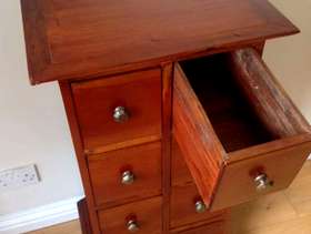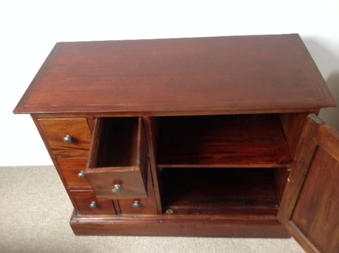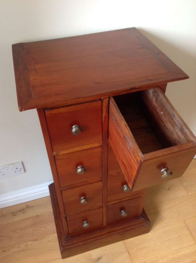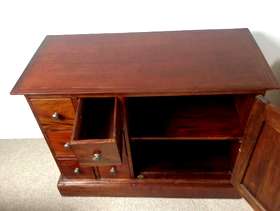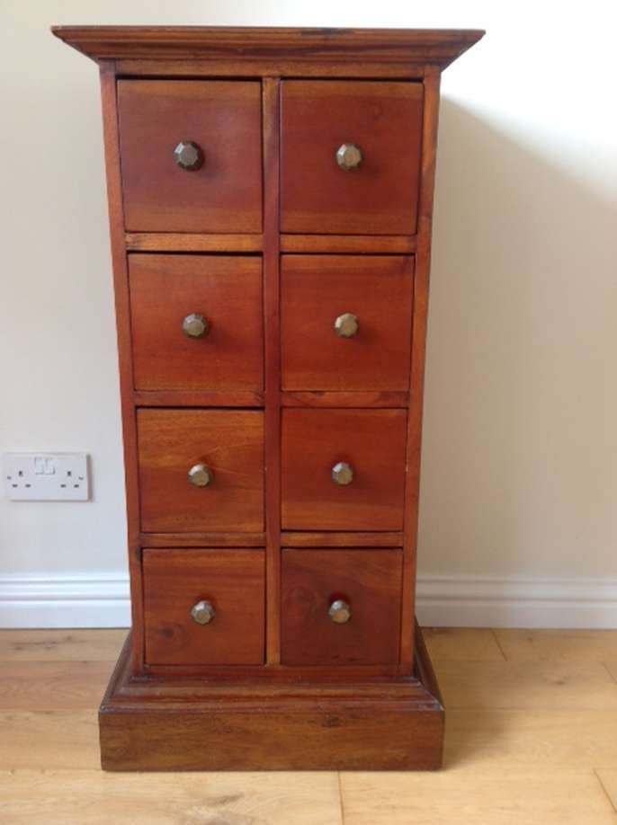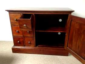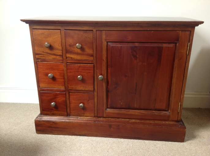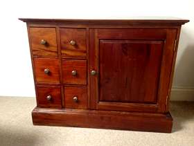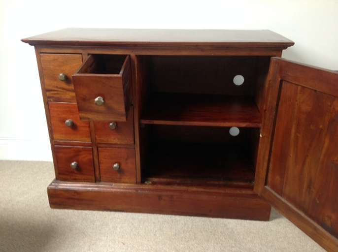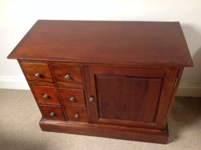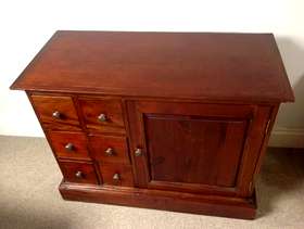 Upright Dark Wood CD / DVD storage unit. W46cm x H92cm x D38cm. Dark Wood CD / DVD storage unit with cupboard to side. W96cm x H74cm x D45cm. Will shell separately if requested. For collection only.