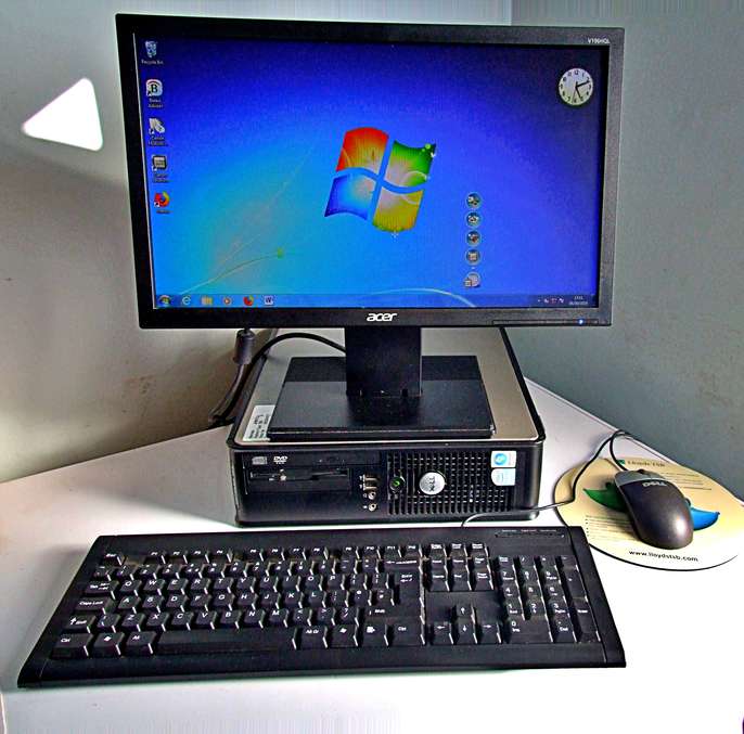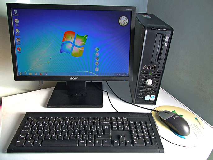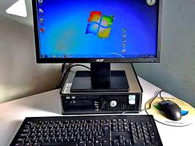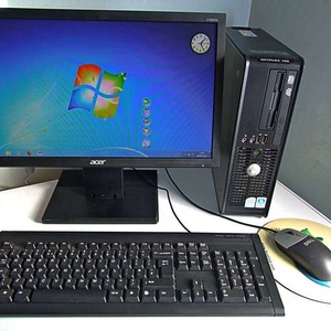DELL OPTIPLEX 755 DESKTOP (SFF) PC – 80GB HDD 4GB RAM INTEL CORE 2 DUO 2.33GHz Windows Version: Windows 7 Pro The Dell Optiplex desktop computer family could perhaps be thought of as the “Land Rovers” of the computer world! You see them everywhere, in hospitals, doctors’ surgeries, council offices, etc. They are reliable, speedy and one of the best value machines available. They are also very easy to upgrade, repair, etc. Whether you need a PC for work or home, the Dell Optiplex can be a very good & economic choice for you or your family. Ideal for business, internet browsing/email, students, etc. This desktop computer can be used either vertically or horizontally (see photos) and is equipped with: SPECIFICATIONS: Acer V196HQL 18” Monitor. Intel Core 2 Duo CPU (2.33Ghz) 80GB Hard Disk Drive 4Gb RAM CD/DVD “ReWritable” Drive 3½” Floppy Disk Drive Keyboard, Mouse & Mousemat A comprehensive range of input and output sockets (including 6 No.USB!) Power & Monitor Cables In addition to “Windows”, it has “LibreOffice” & “Firefox” ready installed. (Optional Wi-Fi capability: + £10)