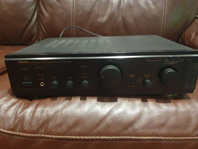Denon PMA-355UK Audio Amplifier In good working condition Collection from BR1 4LH Can deliver within 3 miles of my Post Code If you have any queries, please contact me on 07979696875 .. The Denon PMA-355UK is a 50W per channel (into 8 ) stereo integrated amplifier, specifically designed for the UK market with enhanced, audiophile-grade components. It features a high-current design, a quality internal phono stage, 3 line inputs, and 2 tape circuits. Key Specifications: Power Output: 50W + 50W (8 , 20 Hz - 20 kHz), 85W + 85W (4 , 1 kHz). Total Harmonic Distortion: 0.05% (at rated output, -3 dB, 8 ). Input Sensitivity/Impedance: 2.5mV/47k(Phono), 150mV/47k (CD, Tuner, DVD/AUX, Tapes). Signal to Noise Ratio: 98dB (Line), 78dB (Phono). Dimensions: 434 (W) x 121 (H) x 338 (D) mm. Features: Remote control (RC-843), Source Direct function, Loudness control. Design & Connectivity: Components: Utilizes ELNA audiophile-grade power supply capacitors. Outputs: Speaker A/B terminals (4 - 16 single, 8 - 16 dual), headphone socket. Power Consumption: 185W (IEC).