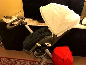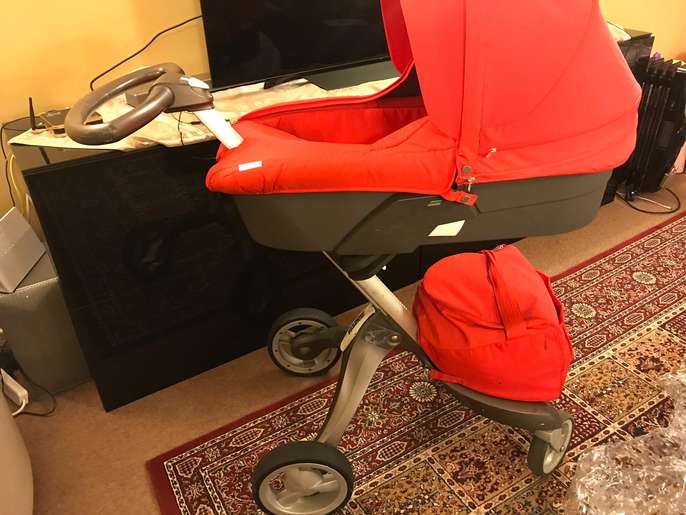 Designer Stokke X Red Single Seat Stroller Buggy and Buggy board+....