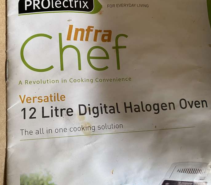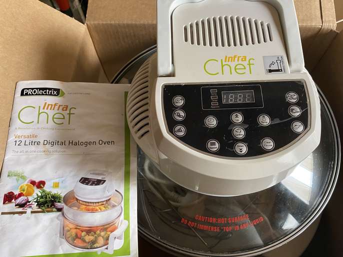 Inter Chef 12 litre digital halogen oven. In great working order only used twice. Collection only St Tudy Bodmin sorry about pictures can’t move them round.